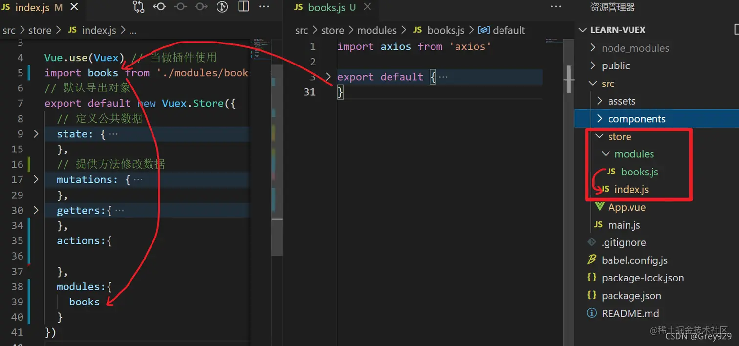 1.在store/index.js 中放置具体的代码
