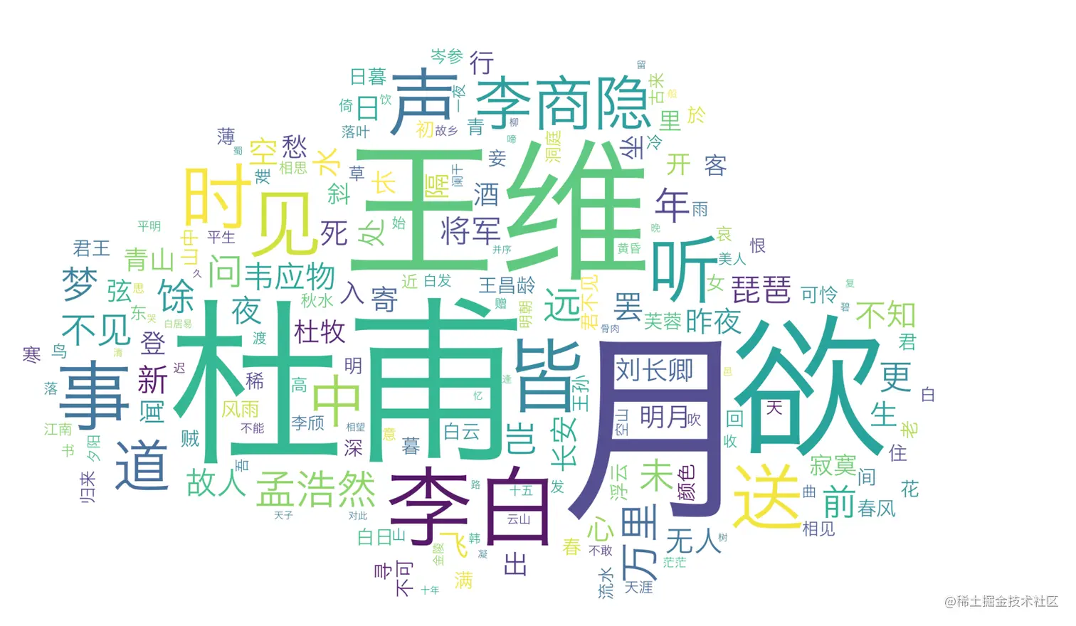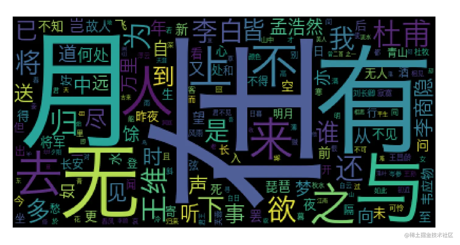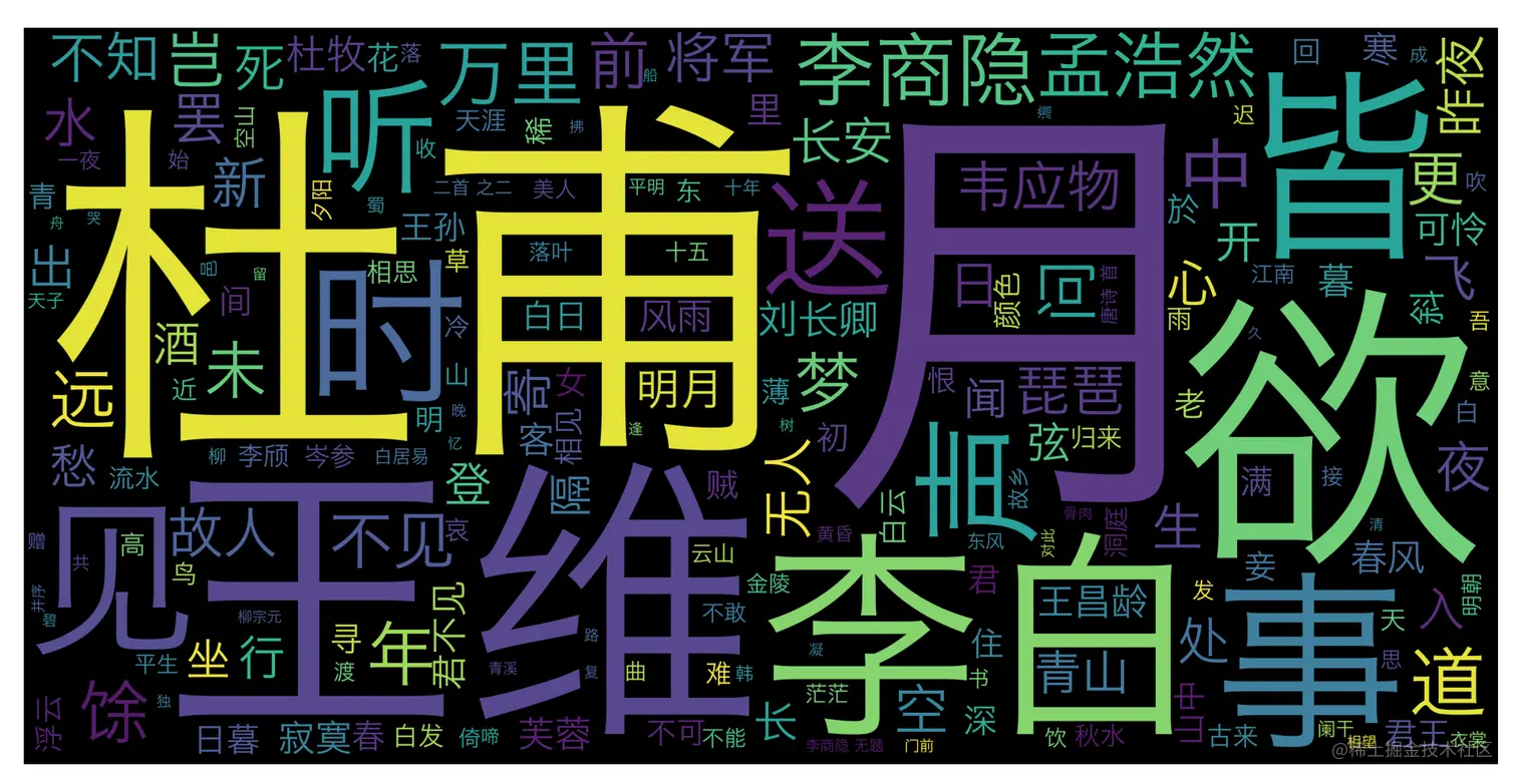我们通过唐诗三百首的词云可以看出,诗人生活条件都比较优越,大部分都去过当时的首都长安,喜欢风花雪月,喝酒,赏月,美女和听曲,诗人这个职业非富即贵,打工人哪有闲情雅致搞吟诗做对,他们都在生活而忙碌.