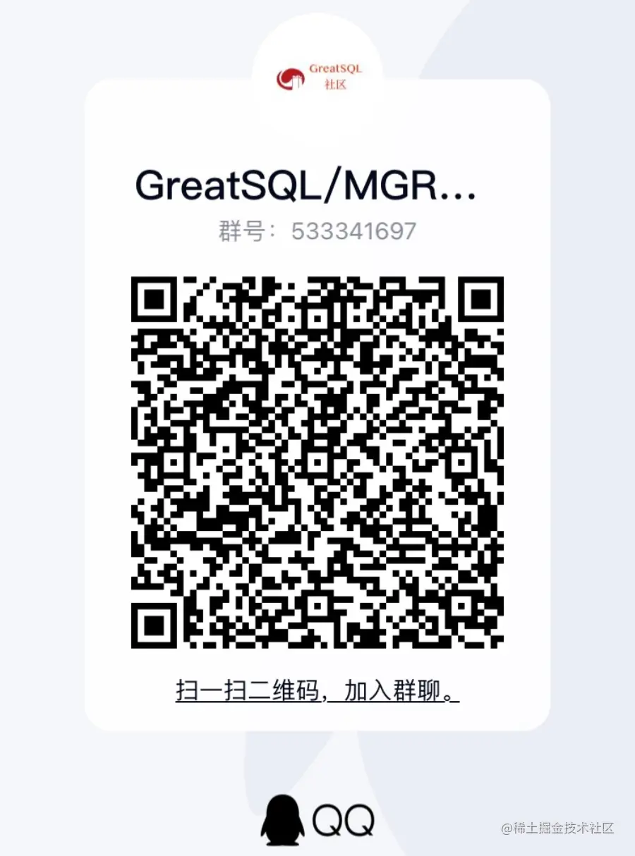 亦可扫码加入GreatSQL/MGR交流QQ群