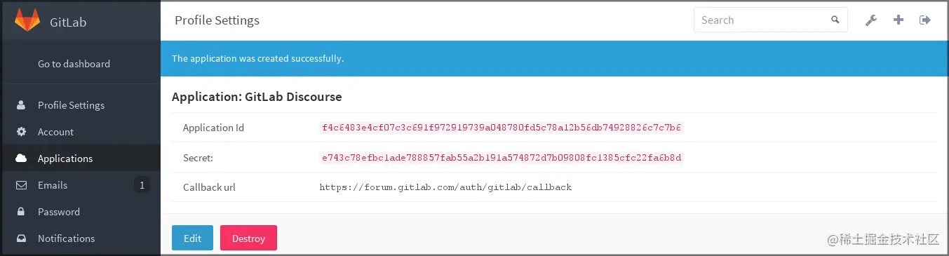 若要使用Gitlab登录,需要在Gitlab上面注册一个应用并且得到appId/appSecret等信息;