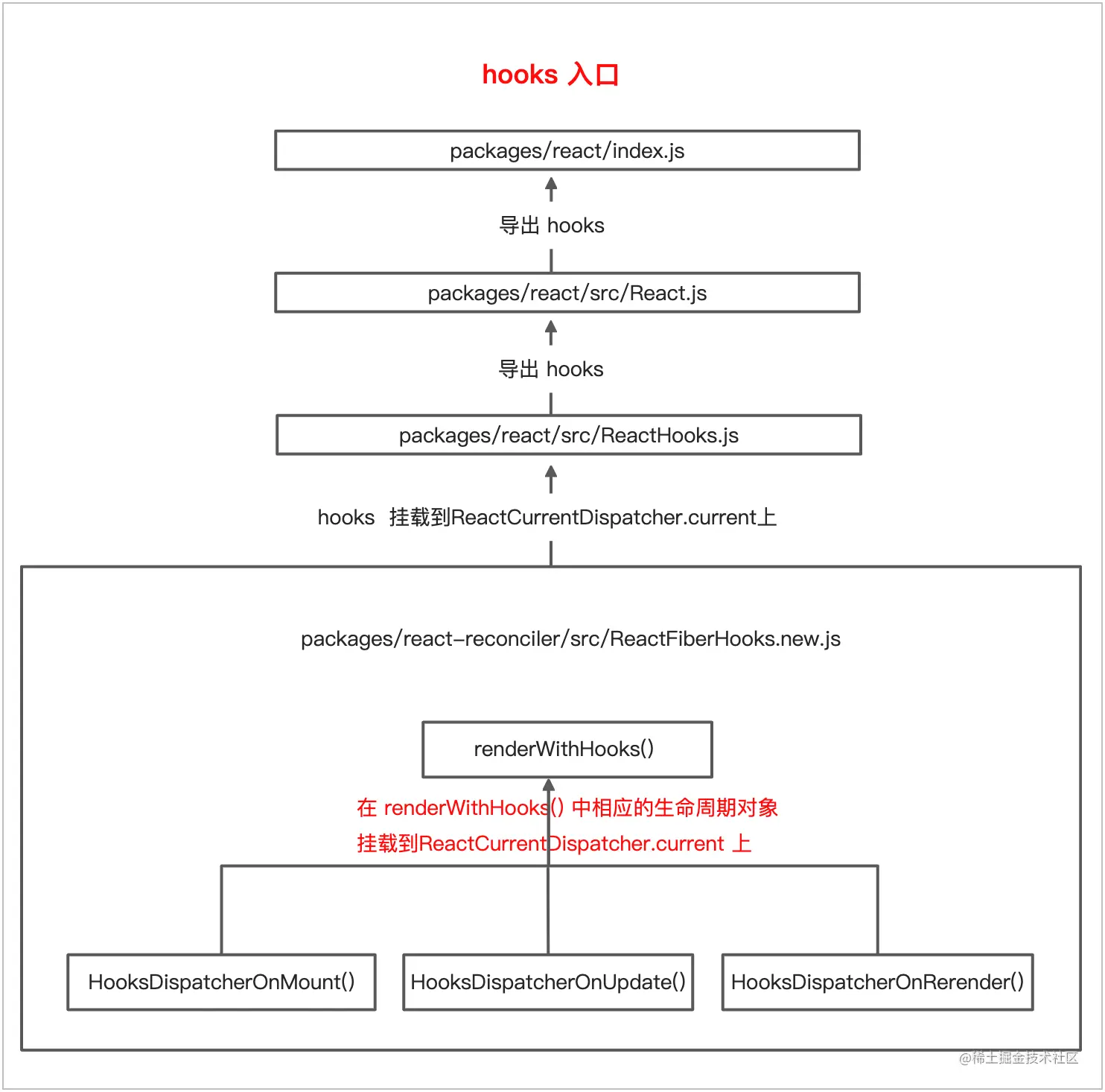 在文中,我们介绍了 Hooks 的入口以及入口函数 renderWithHooks。