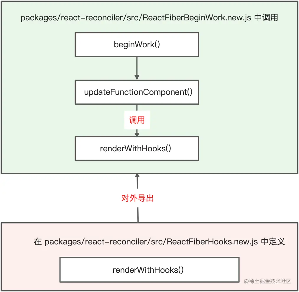 至此,我们知道了 React Hooks 的渲染核心入口是 renderWithHooks,其被调用的流程可总结如下: