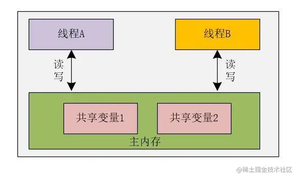 说的直白些,就是两个线程共享一个变量,无论哪一个线程修改了这个变量,则另外的一个线程都能够看到上一个线程对这个变量的修改。这里的共享变量,指的是多个线程都能够访问和修改这个变量的值,那么,这个变量就是共享变量。