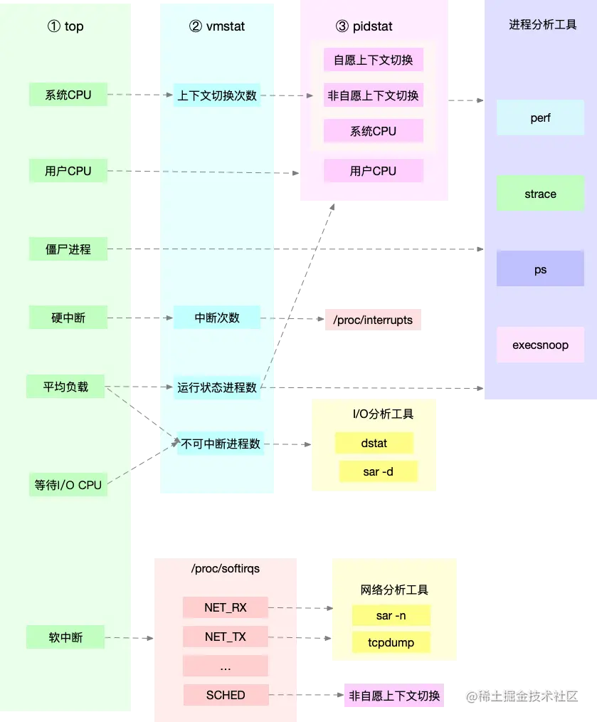 这时,你还需要根据上下文切换的类型,再做具体分析。比方说: