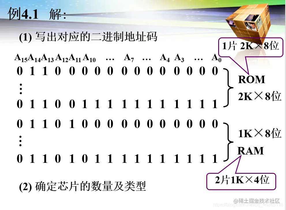 例****4.1 设CPU有****16根地址线、8根数据线,并用