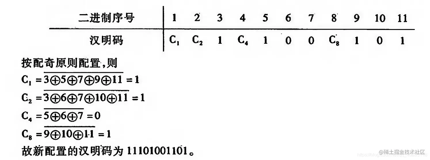 如果按照配偶原则来配置汉明码,则C1应使1,3,5,7位中1的个数为偶数。