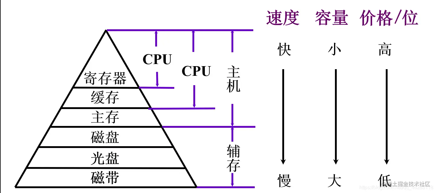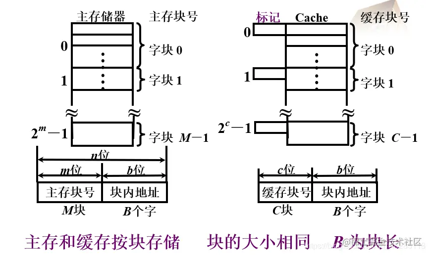 主要解决CPU和主存速度不匹配问题,由于缓冲速度较快,将CPU近期要用的信息调入缓存, CPU可以直接从缓存中获取信息。主存和缓存之间的数据调动是硬件自动完成的,对程序员是透明的。