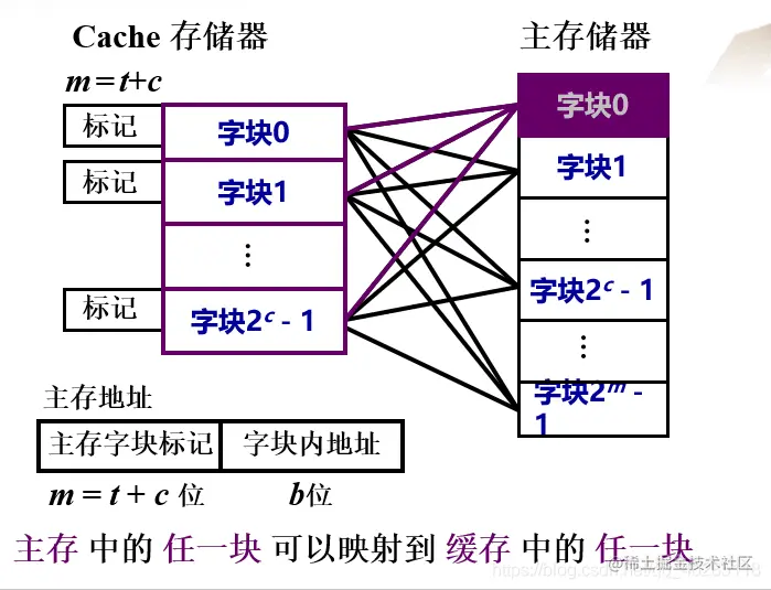 全相联映像:某一主存块可映射到任一缓存块,最灵活,不易冲突,但成本高。