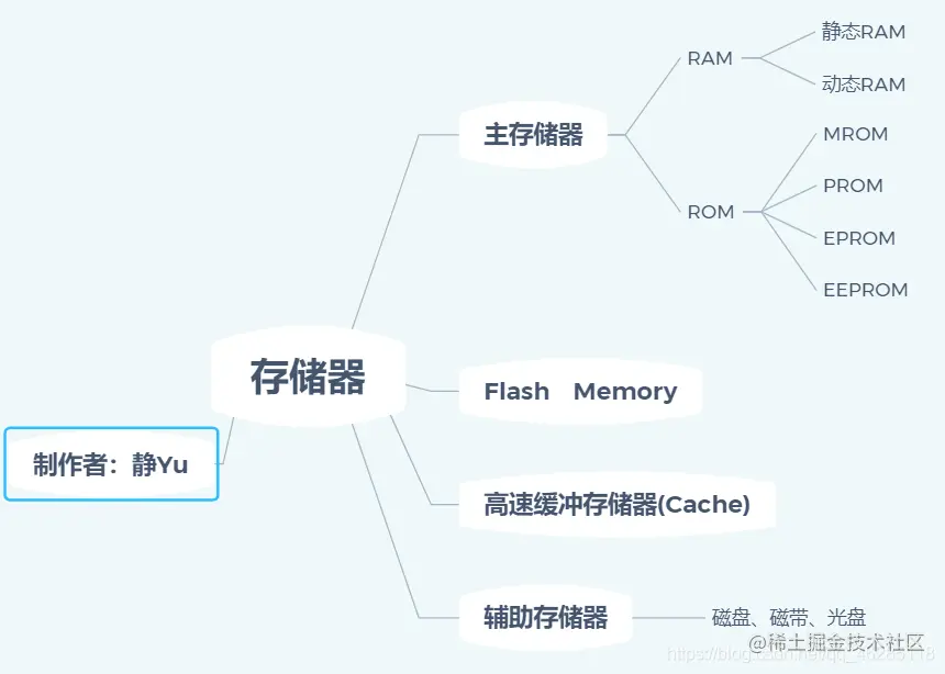 只读存储器ROM:非易失性;掩膜型只读存储器(ROM)、可编程只读存储器(PROM)、可擦除可编程只读存储器(EPROM)、电可擦除可编程只读存储器(EEPROM)、闪速存储器(Flash Memory)