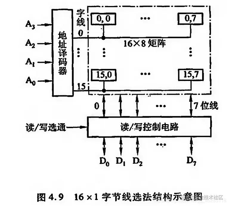 一根字选择线直接选中一个存储单元的各位。这种结构方式简单,但只适合容量小的存储芯片。