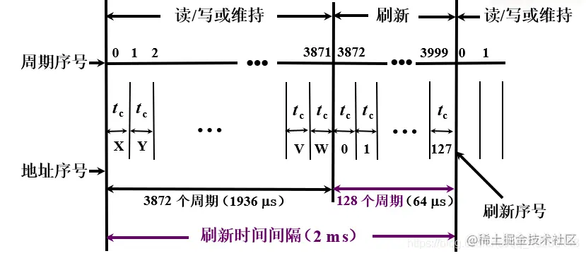 存取周期进行连续两次独立的存储器操作所需的最小间隔时间,通常·存取周期大于存取时间。
