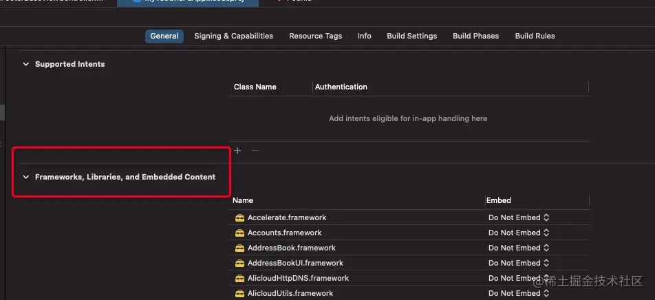 于是我就去General里面,找到Frameworks,Libraries这一列,里面果然是没有看到有BDPCAID.framework这个文件。