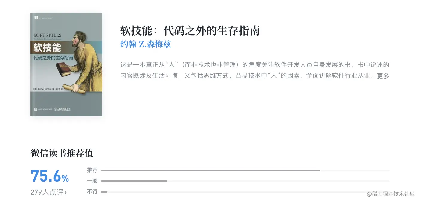 不要以为书中讲的是“软技能”,就觉得书中的内容不如一些技术书籍写的那么“干”,那么“硬”。其实书中的很多章节都写的发人深省。