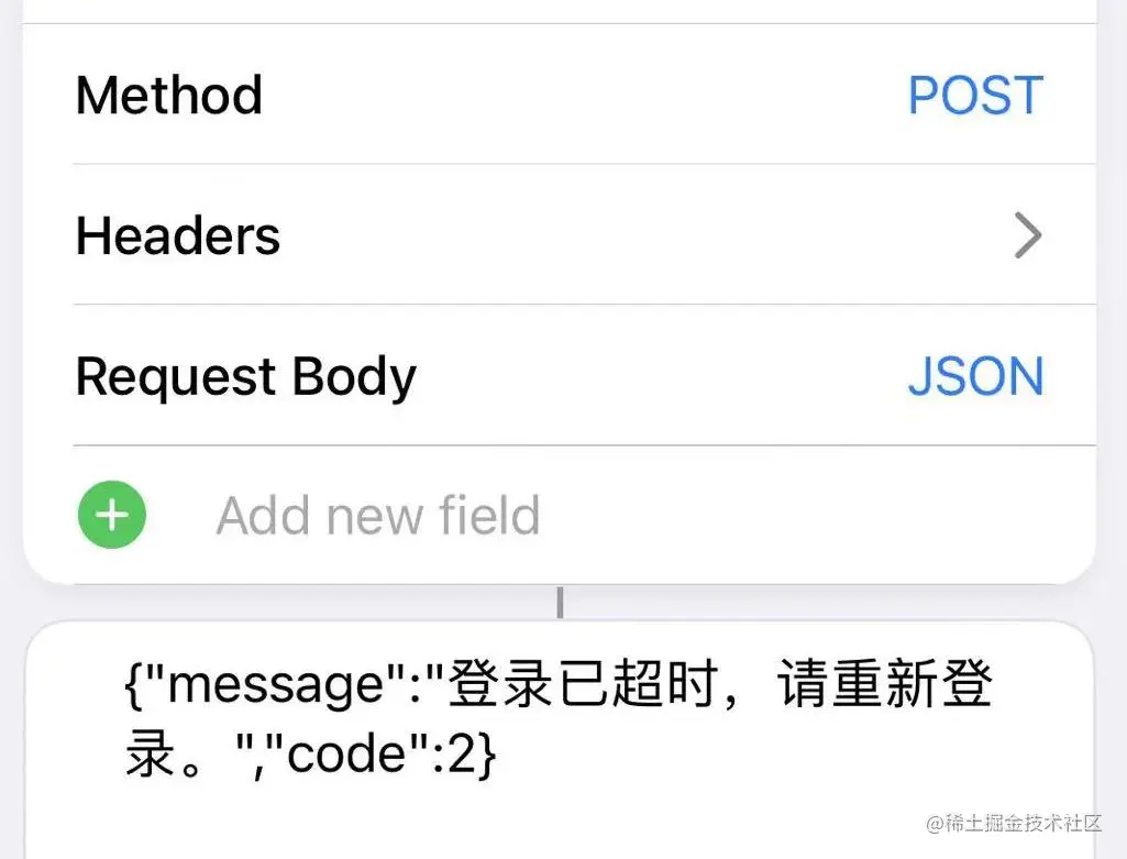 接下来把这个捷径添加到Spotlight界面,锁屏界面右划点一下,就可以实现一键开小区门禁,和打开App的四五步操作相比,确实省时省力。拿着新配好的捷径去上班,下班回到小区想试一把一键开门,结果又被困到门口了,上午还正常的捷径竟然失效了,打开一看API报登录超时,有可能是Cookie里的SESSION_ID过期了。