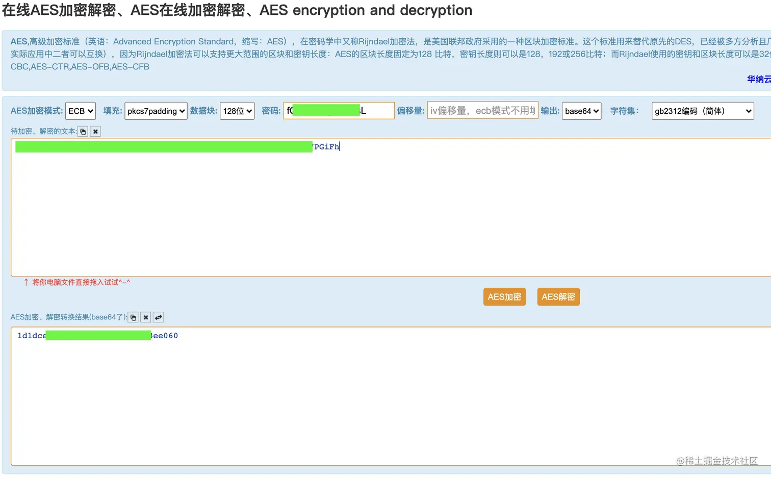 登录过程清楚了,但是其中使用AES_KEY对密码进行加密的配置还是不清楚的,使用一个工具来尝试通过密文和AES_KEY来解密:tool.chacuo.net/cryptaes