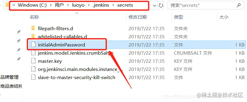 jenkins的admin用户的初始密码路径 bug菌 2021-10-22 614 阅读1分钟 JENKINS_HOME 目录中的 /secrets/initialAdminPassword 文件明文保存 admin 用户的密码,直接查看即可。 用笔记本打开即为初始密码: