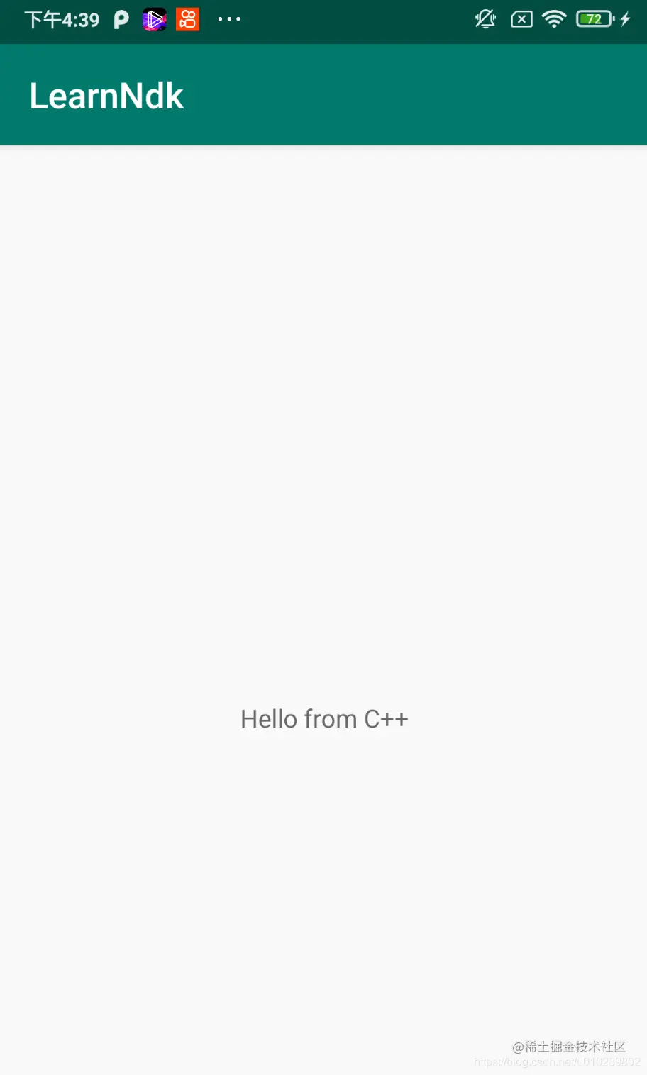 可以看到比普通的 Android 项目多了一个 cpp 目录,并且在 MainActivity 中多了个一个 native 方法 stringFromJNI(),这个方法 在 Java 层是个空实现,它的具体实现在 native-lib.cpp 中: