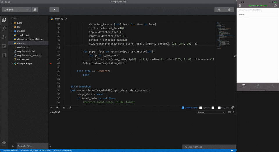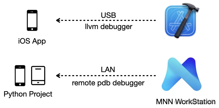 上面两种研发方式的主要问题是脱离了代码当前的运行环境,因而会产生调试信息的缺失。我们知道,每一种语言在开发者之间的流行都离不开配套的 IDE 调试工具,就像可以使用 Xcode 调试手机应用的 OC 代码一样,我们需要一种能真正进行端智能算法在端侧部署和调试的工具和方案,来提高 AI 研发生产效率。