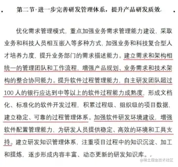 2016 年 7 月银监会发布的《中国银行业信息科技“十三五”发展规划监管指导意见》中提出:完善银行研发管理体系,并要求自主研发团队超过 100 人的银行应达到中等以上的软件过程能力成熟度。