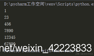 4.字符串换行输出 a = '12345678901234567890',效果如下: 1 23 456 7890 12345 67890
