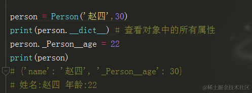 print(person) # 姓名:赵四 年龄:-10
