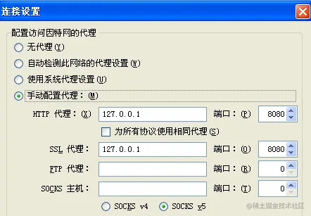 架设代理服务器比如Burp Proxy,然后设置浏览器使用代理服务器。这样浏览器所有的http以及https数据都会被Burp Proxy代理截获,并且可以查看https解密后的明文数据。当https数据被截获后,浏览器会验证主机的证书,证书验证不通过时浏览器会发出访问安全警告阻止用户继续访问。所以这种方法通常用于http和https数据包分析。Firefox的代理设置: