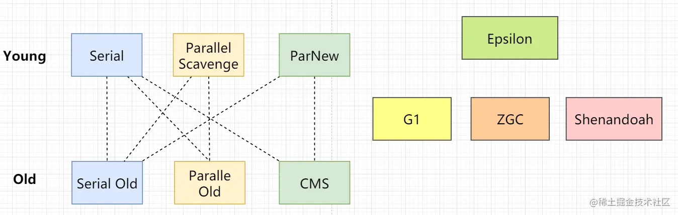 随着我们的业务发展,jvm产生的垃圾,也会慢慢变多。 最开始可能只有几兆~几十兆,到后面几十G以上。 并且垃圾回收器是搭配着用的,年轻代 + 老年代各用一款 比如Serial + Serial Old