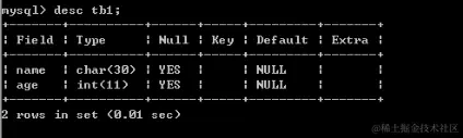 CREATE TABLE tb2(name CHAR(20),age INT));