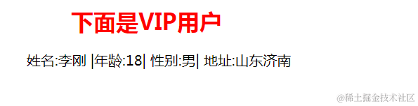 li += '<li>姓名:%s |年龄:%s| 性别:%s| 地址:%s</li>'%a