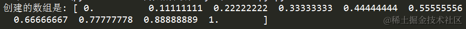 arr = np.linspace(0,1,10) # 开始值、终止值、元素个数