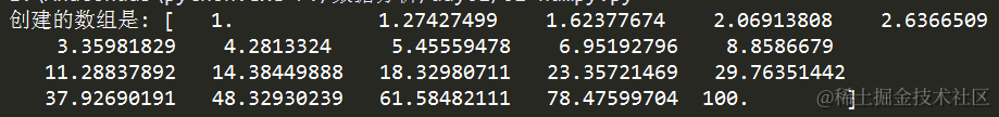 arr = np.logspace(0,2,20) #等比数列 10^0~10^2 20个