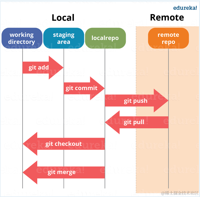 我建议你先通过了解 git 的架构再来回答这个问题,如下图所示,试着解释一下这个图:
