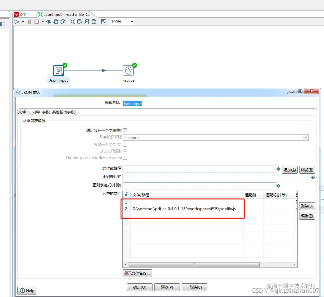 第一步:配置Json input组件