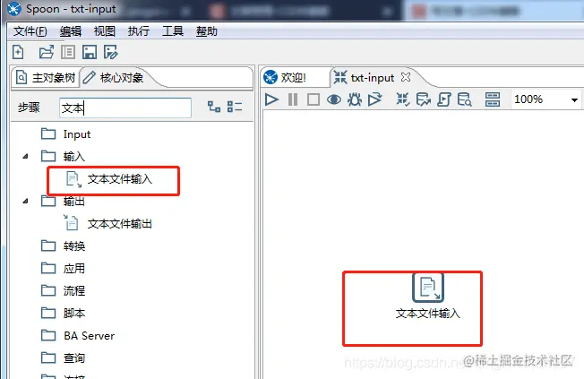 第一步:在工作区拖入“文本文件输入”节点,如下图所示: