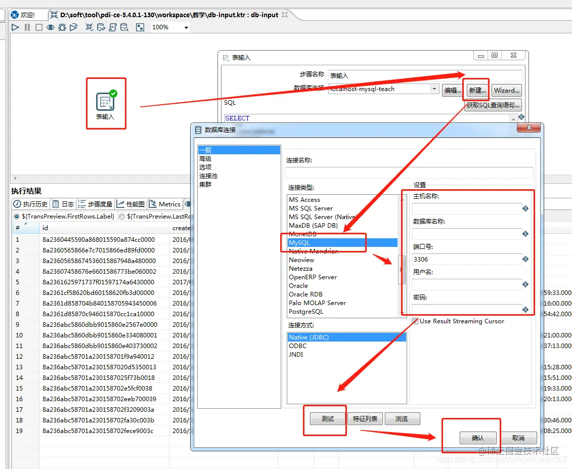 第一步:配置表输入节点:
