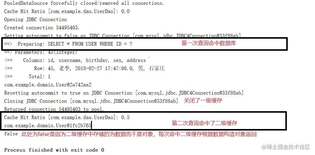 //第一次查询 并更新二级缓存