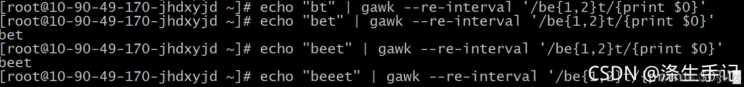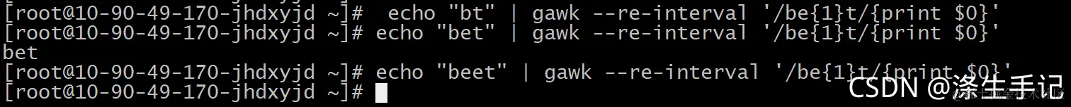 注意:在awk程序中使用正则表达式间隔时,必须使用--re-interval命令行选项。