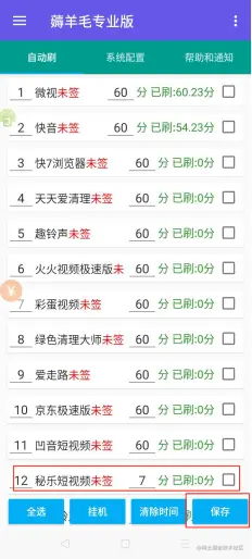 - 是否自动签到,这个还是很意义的,之前我放自动刷的前面发现有的app会卡住,防止万一我把签到放到自动刷的后面了和清理内存一起