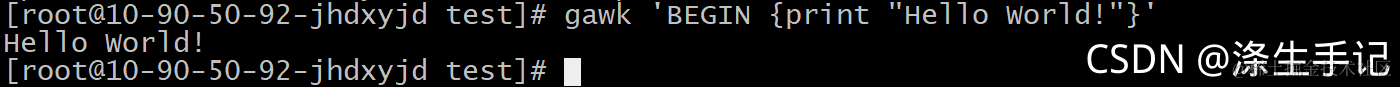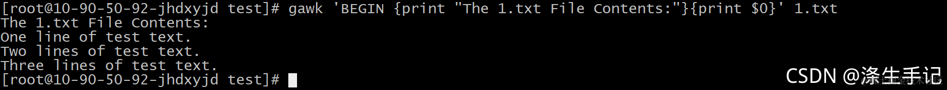 此时我们在BEGIN脚本区域后用 { } 定义一个新的脚本区域,这个脚本区域的程序会相继执行。值得注意的是,不管后面有几个脚本区域,他们都需要包含在同一个单引号之中。