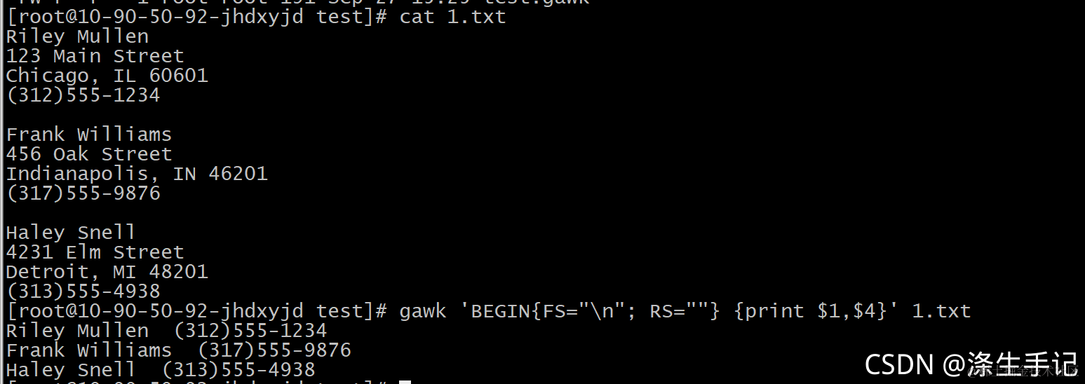 该示例中 把 FS变量设置成换行符。这就表明数据流中的每行都是一个单独的字 段,每行上的所有数据都属于同一个字段。把 RS 变量设置成空字符串,然后在数据记录间留一个空白行。 gawk 会把每个空白行当作一个记录分隔符。