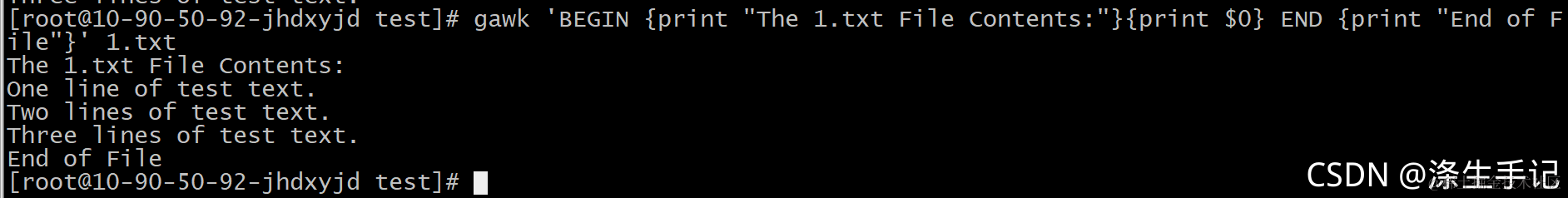 当 gawk 程序输出完文件所有内容后,执行 END 脚本中的命令。