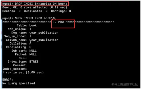 SHOW INDEX FROM book\G; //在查看book表中的索引,就会发现BkBookNameIdx这个索引已经不在了