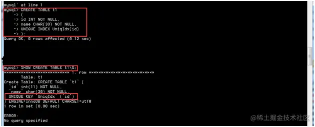 解释:对id字段使用了索引,并且索引名字为UniqIdx。