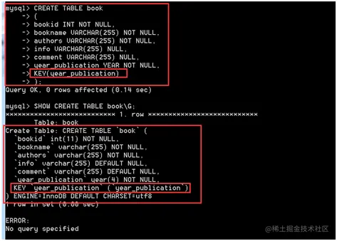 就拿上面的book表来说。本来已经有了一个year_publication,现在我们为该表在加一个普通索引
