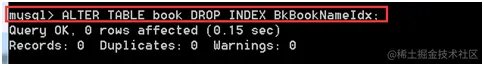 很简单的语句,现在通过一个例子来看看,还是对book表进行操作,删除我们刚才为其添加的索引。