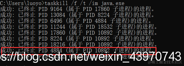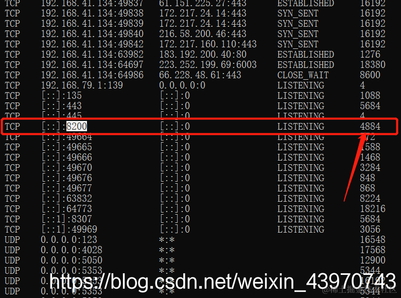 2.找到对应的端口对应的PID 输入指令找到对应的进程