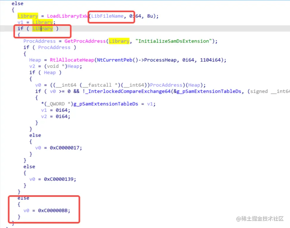 我们跟进函数然后发现SampLoadDsExtensionDll函数继续跟进分析