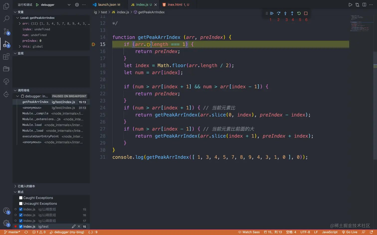 vs code中将html文件打开了,这里有两种方式 一种是通过open in browser插件打开,二是通过Live Server打开(两者在vscode商店中直接搜索就可以了),两者的区别在于更新代码后,前者需要手动刷新浏览器,后者会自动监听文件的变化从而做出响应。 - 如果是console的话,那么直接打开devTools就可以看到了,如果是代码中的debugger,那么就直接开始调试了,还有一种方式就是在**「source面板」**中找到对应的文件,然后在左侧打断点调试。