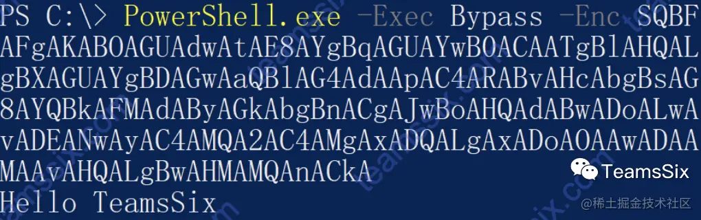 PS C:\Users\teamssix> PowerShell.exe -ExecutionPolicy Bypass -File t.ps1