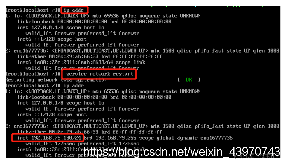 显示ok说明重启网络成功,ip也对应查询出来了,